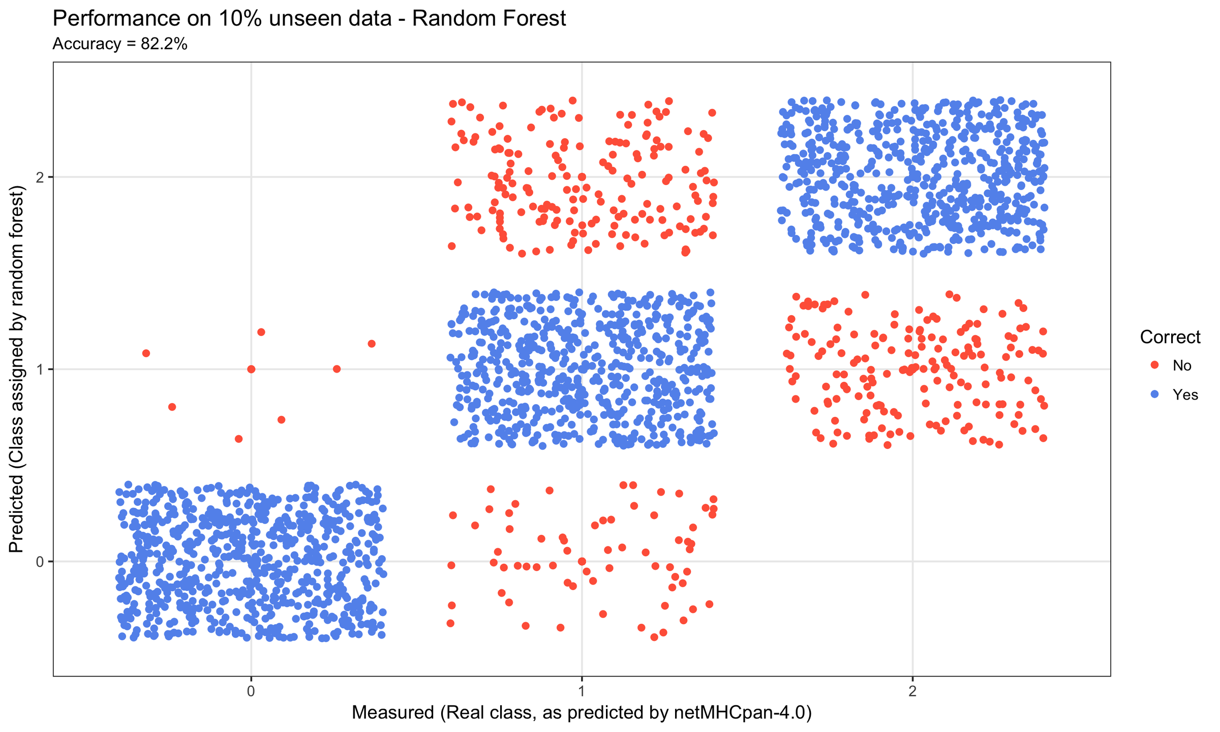 title = "Performance on 10% unseen data - Random Forest"