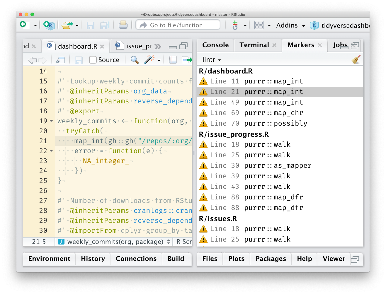 First carefully review the operation of the function you are replacing. Many functions in CRAN packages appear superficially similar to base equivalents, but often handle edge cases (that you’ve likely never encountered) more consistently. Next and most importantly, write tests for the existing behavior. This is an essential step which will greatly reduce the introduction of new bugs. Only once you have written the tests should you start performing the replacement. If you are porting a function with existing tests a good practice is to port its tests as well.