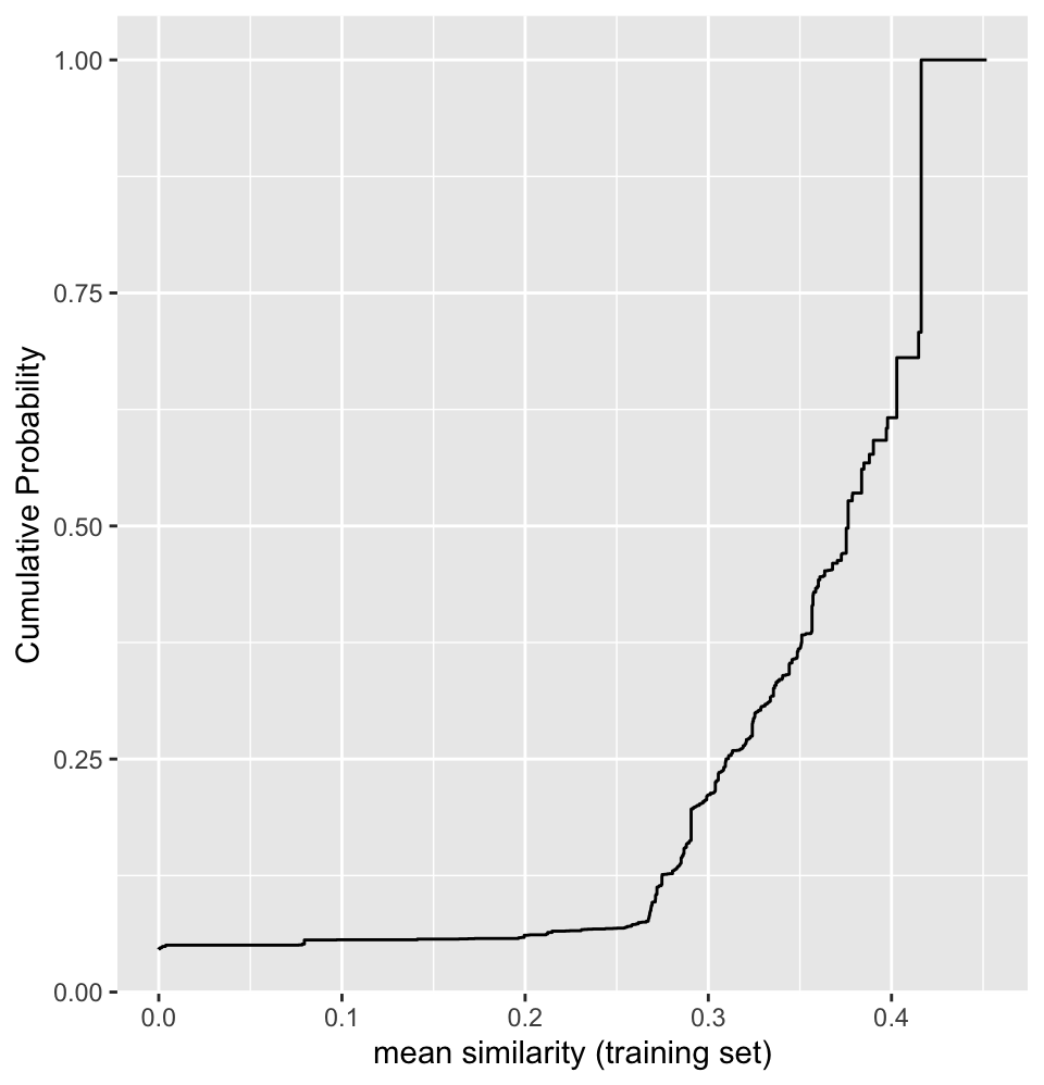 autoplot: shows the cumulative probability versus the unique similarity values in the training set. -