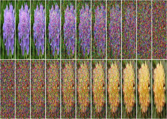 When, above, we said that the idea of diffusion models was to sequentially transform an input into noise, then sequentially de-noise it again, we left open how that transformation is operationalized. This, in fact, is one area where rivaling approaches tend to differ. Y. Song et al. (2020), for example, make use of a a stochastic differential equation (SDE) that maintains the desired distribution during the information-destroying forward phase. In stark contrast, other approaches, inspired by Ho et al. (2020), rely on Markov chains to realize state transitions. The variant introduced here – J. Song et al. (2020) – keeps the same spirit, but improves on efficiency.